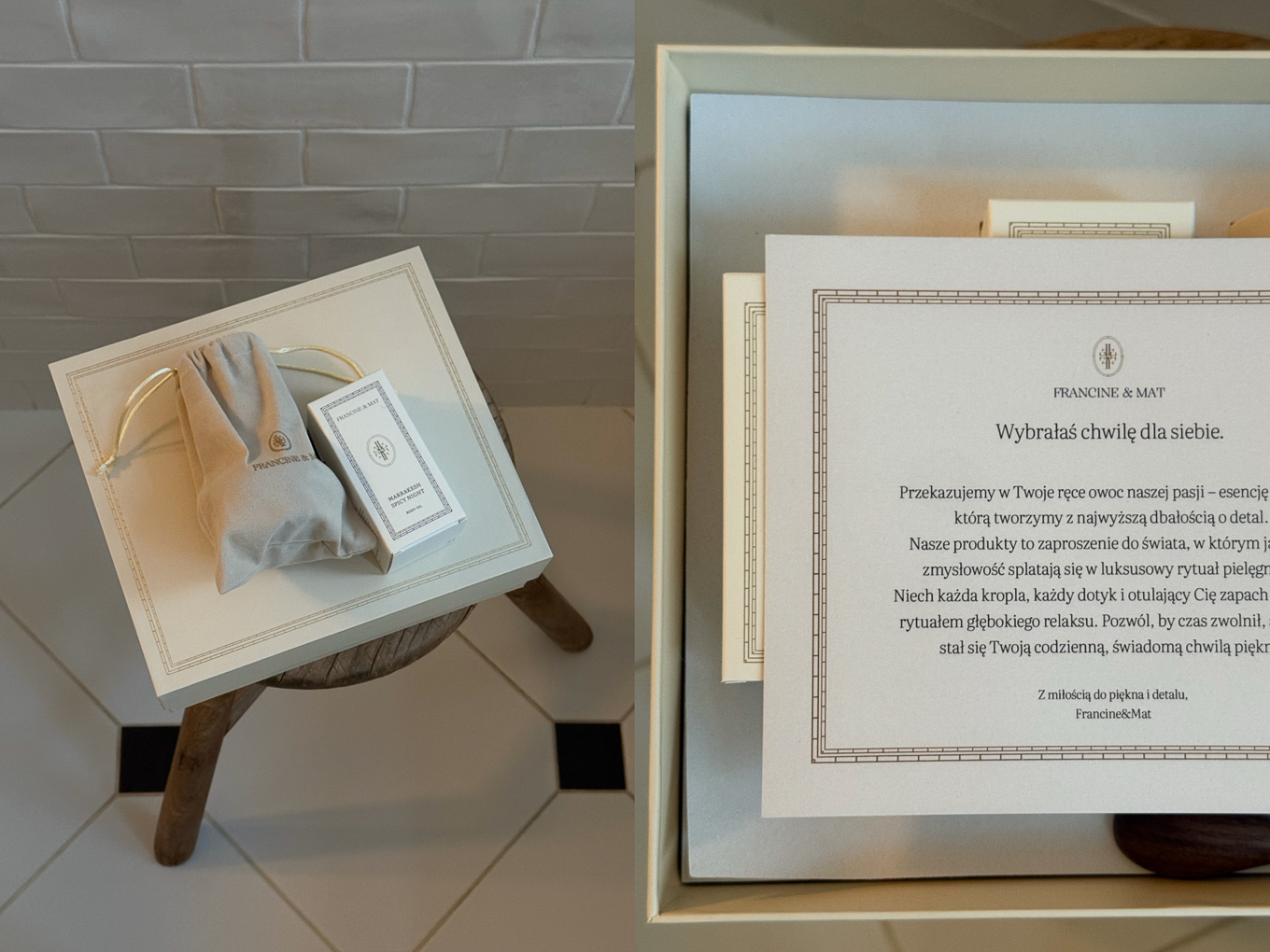 Ale mi z całą pewnością afirmacje nie wystarczają. Po ostatnim spacerze na mrozie, byłam tak skostniała, że pierwszy raz od roku postanowiłam zrobić sobie gorącą kąpiel we własnej wannie. Tym bardziej, że dotarła do mnie taka paczka. Wydawało mi się, że kosmetyki, sposób ich zapakowania, zapach i tak dalej nie mogą już na mnie zrobić wrażenia. A jednak produkty Francine&Mat sprawiły, że od razu miałam ochotę je otworzyć i użyć.