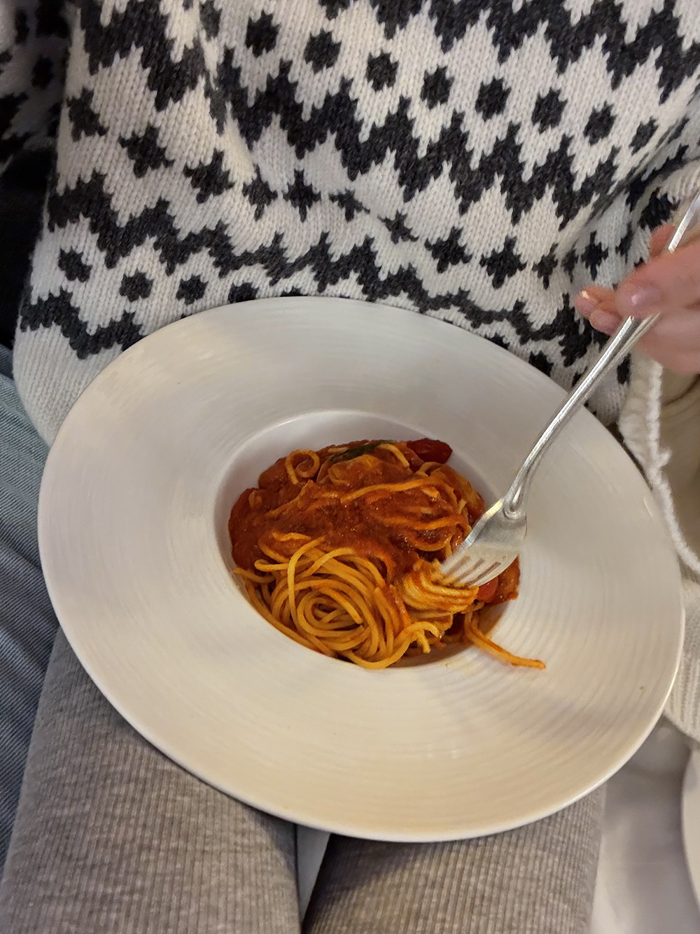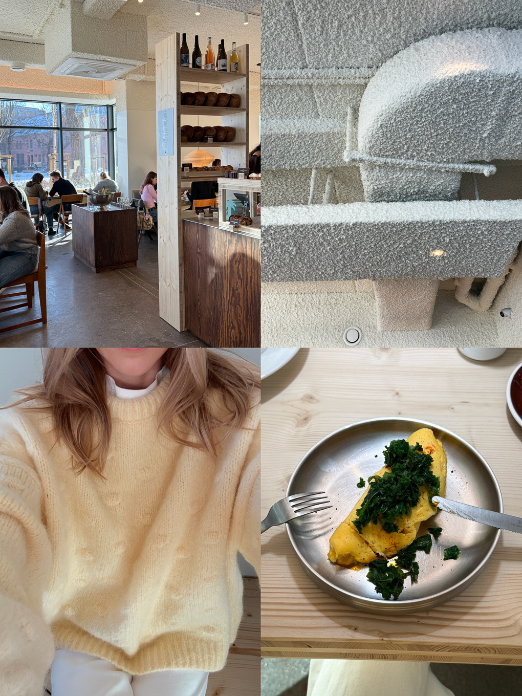 1. Świetnie zaprojektowana przestrzeń. Surowa i przytulna jednocześnie. No i spotkałam moją Obserwatorkę! // 2. To nie jest oszroniona elewacja. To sufit, który wygląda niczym pokryty delikatną warstwą śniegu. // 3. Nasz masełkowy Graz wciąż dostępny w MLE, ale w ostatnich sztukach. Gotowi na bardziej wiosenne kolory? // 4. Nawet zwykły omlet był naprawdę wyjątkowy. //