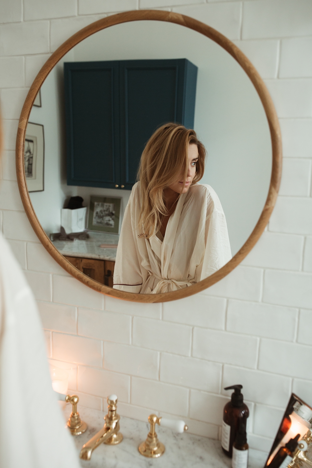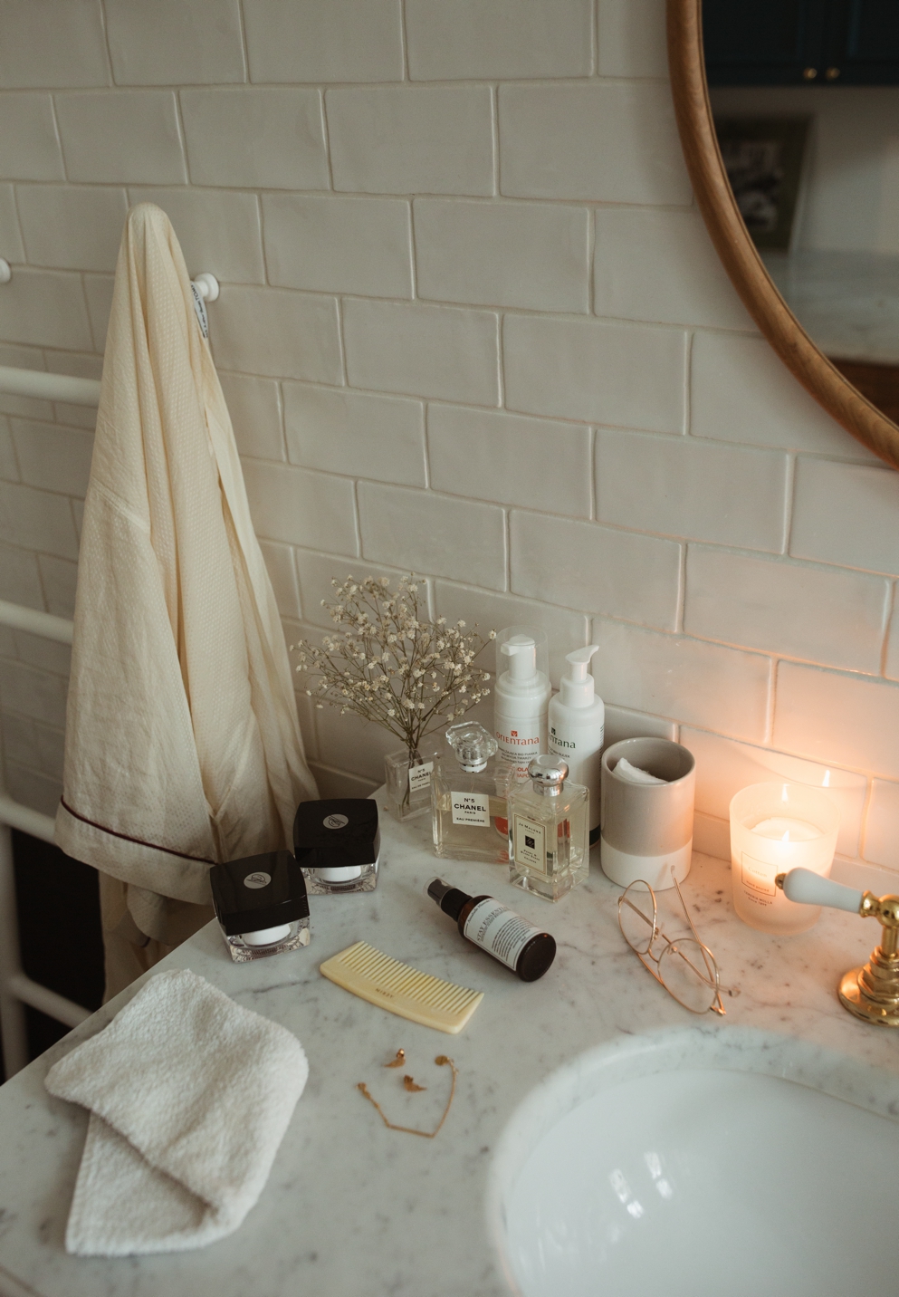 piżama – Hibou / ręczniki – H&M Home / poszewka – Nap.com.pl / krzesło – OLX / lusterko – H&M Home