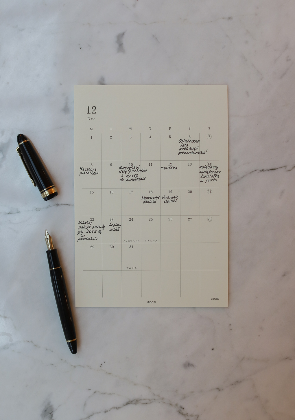 Dwa wspaniałe prezenty – pióro Sailor (klasyk wśród wiecznych piór) oraz kalendarz, który w swojej prostocie stał się u mnie ozdobą biurka i jednocześnie wspaniałym organizatorem czasu. W NOTEKA znajdziecie najpiękniejsze kalendarze, które nie krzyczą, mają delikatne rozwiązania graficzne i przyjemny papier. Są też większe wersje! Kod MLE15 daje 15% rabatu w sklepie Noteka i działa do 10 grudnia.