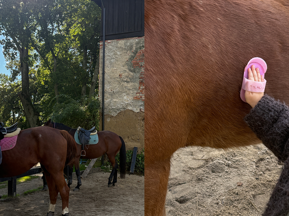 W drodze na warsztaty zerkam jeszcze do stajni. Czyżby temu rumakowi wydawało się, że zgapiłam melanżowy wzór z jego sierści?