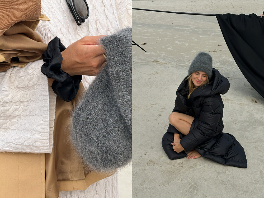 1. Przez całe lato pogoda była jak w październiku, ale w dniu jesienno-zimowej kampanii akurat był upał. Także bardzo mi miło w tych moherowych kapturkach z szalikiem, czapkach i puchowych kurtkach. Swoją drogą – te dodatki to nowość i wiem, że je pokochacie. // 2. Nasze puchowe kurtki i płaszcze uzyskały certyfikat RDS. Zapewnia on, że puch i pierze pochodzą od kaczek i gęsi, którym zapewniono odpowiednie warunki przez cały okres hodowli. Certyfikat ten zyskał uznanie niezależnych organizacji prozwierzęcych, jednak trudność w jego pozyskaniu (i związane z tym wyższe koszty produkcji) sprawiają, że wciąż bardzo niewiele polskich marek może się nim poszczycić. Puchowe produkty marki MLE otrzymały oficjalny numer licencji (CU 1456815), dzięki któremu można sprawdzić czy faktycznie mamy prawo posługiwać się tym certyfikatem (bo przecież wiemy, jak nieprzejrzysty jest rynek odzieżowy). //
