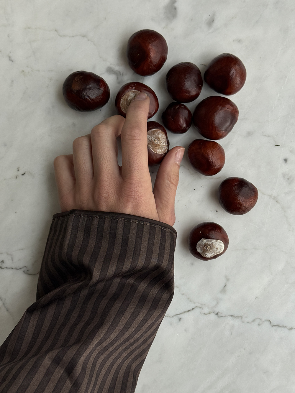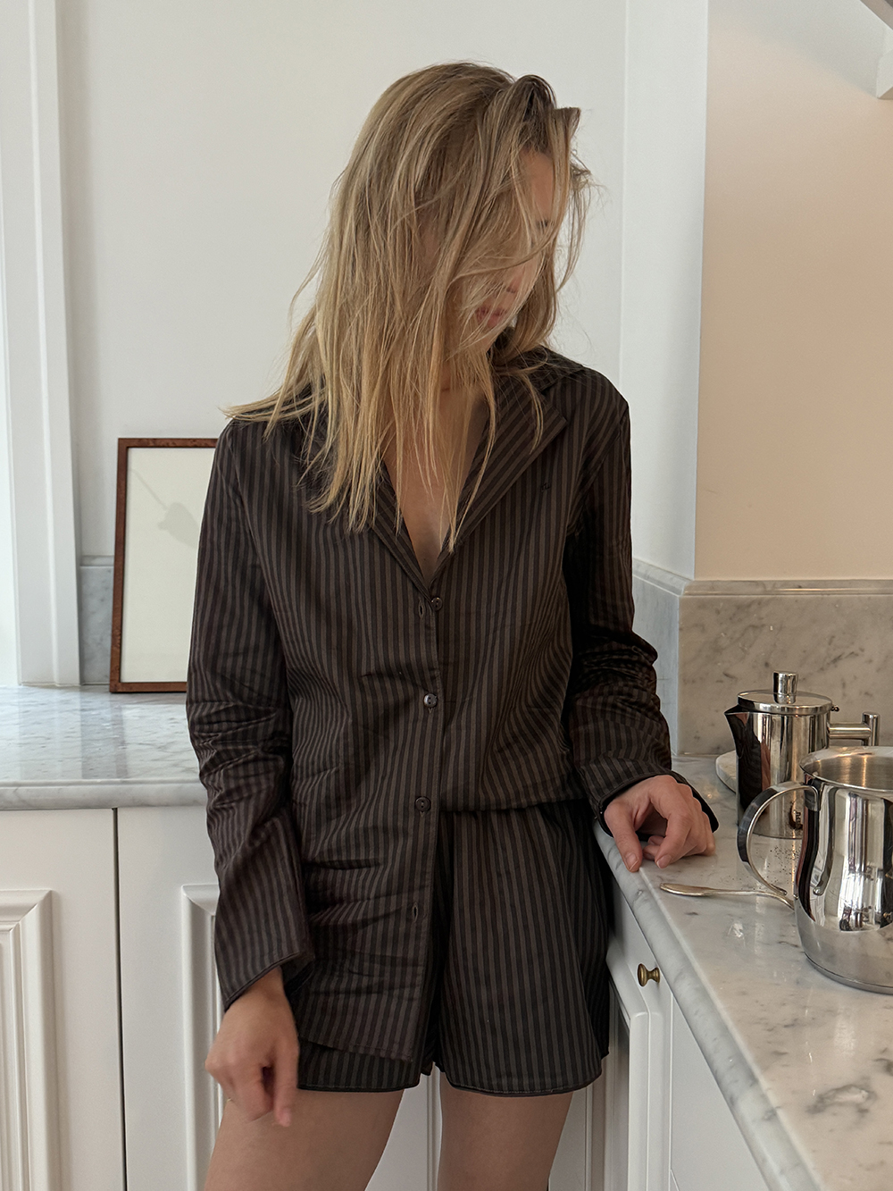 Brąz to podobno kolor sezonu, ale według mnie to od zawsze po prostu kolor jesieni. A w tej pidżamie czuję się trochę jak Winston Churchill. Myślę, że spodobałby mu się ten wzór. Moja piżama jest od ARUELLE. Podobnie jak ten pasiasty szlafrok, który widziałyście wyżej.