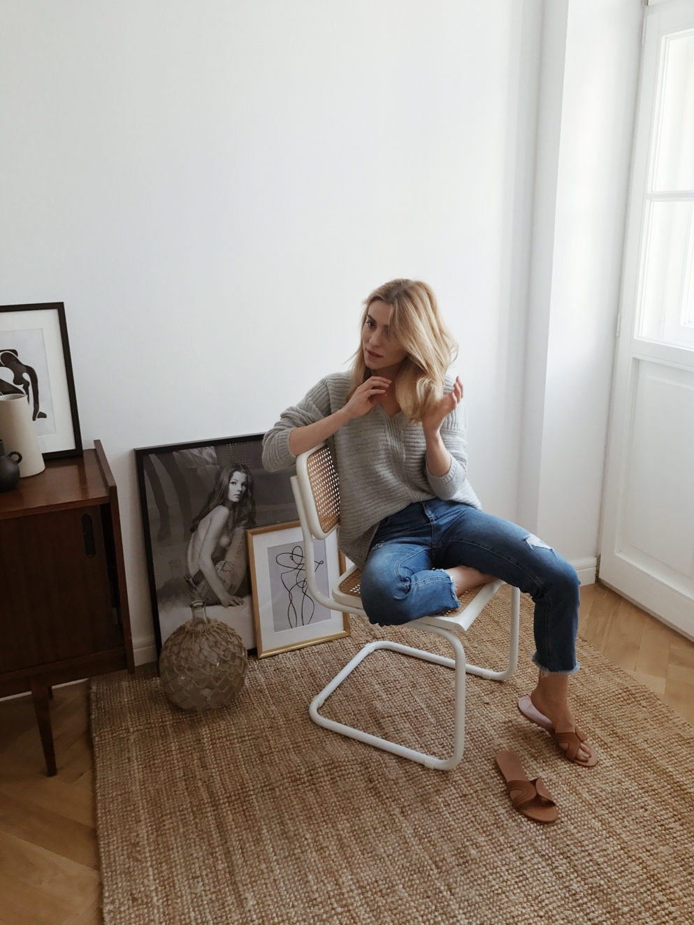 Sweter znajdziecie w MLE Collection, klapki kupiłam w Mango (podobne znajdziecie tutaj), a dżinsy mam z KappAhla (tutaj podobne).