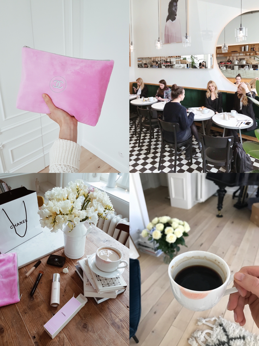 1. Moja nowa kosmetyczka, która nie opuści żadnej podróży. // 2. Miłe spotkanie w Krem_Warszawa // 3. Wiosenne nowości od Chanel. // 4. Smak kawy o poranku. //