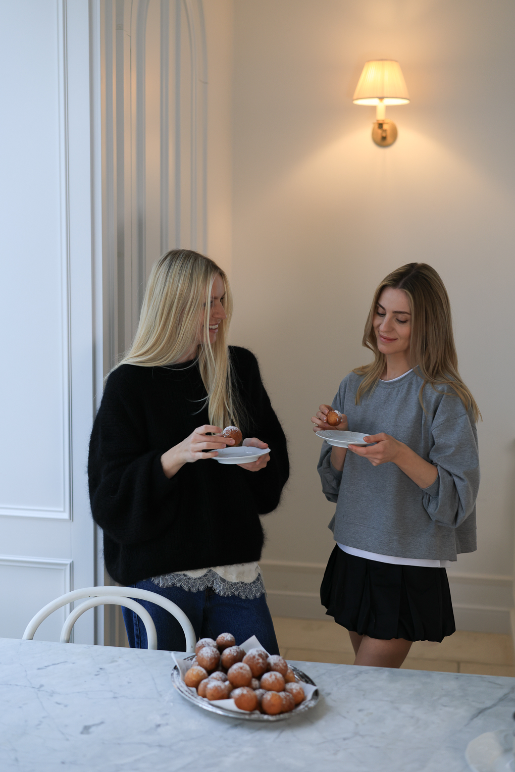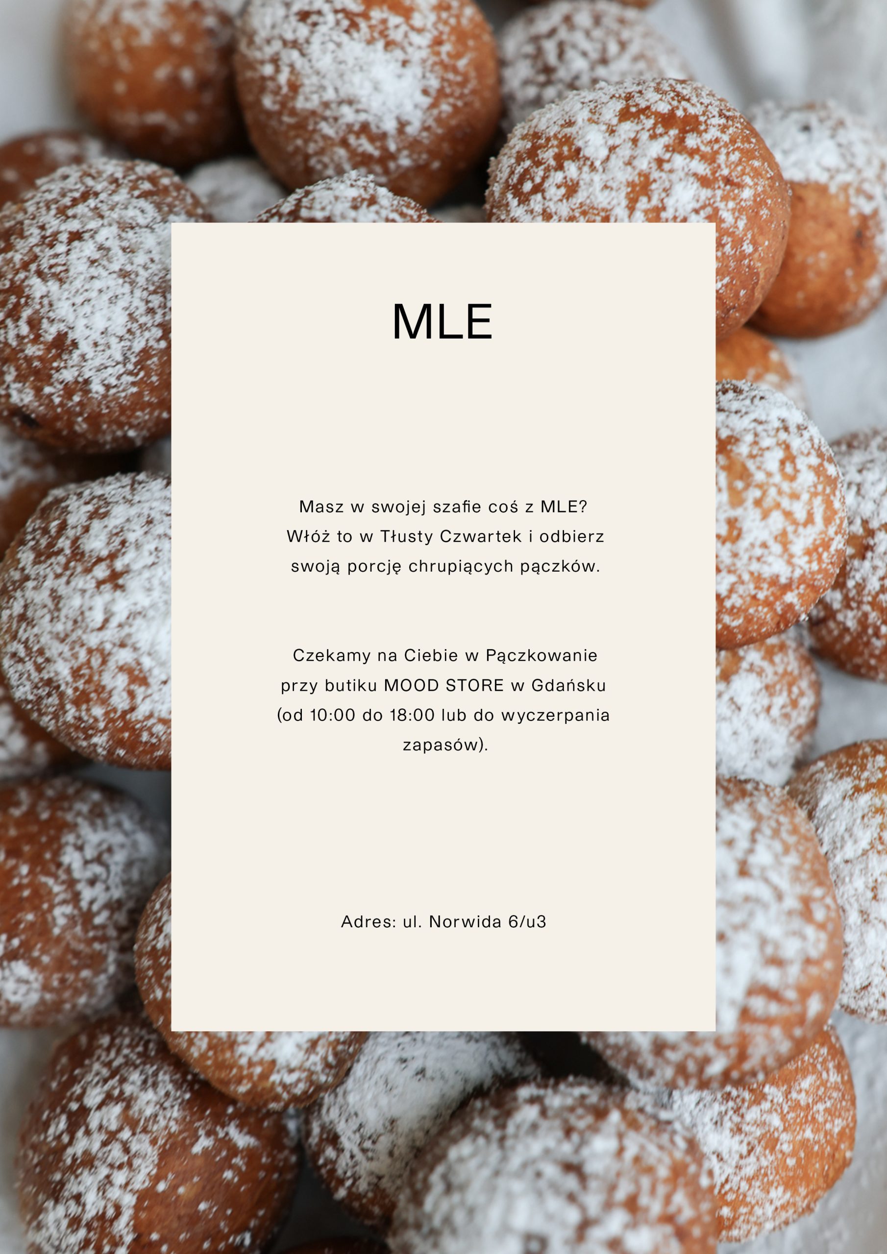 Poniżej znajdziecie mój ukochany, dokładny przepis. Z podanych proporcji wychodzi między pięćdziesiąt a sześćdziesiąt małych pączków. Jeśli jednak jesteście z Trójmiasta lub okolic, nie zawracajcie sobie głowy smażeniem. Usmażymy je za Was. W Tłusty Czwartek włóżcie na siebie cokolwiek, co kupiłyście w MLE i przyjdźcie na Garnizon, a my poczęstujemy Was pączkami z naszego pączko-vana (butik Moodstore, ul. Norwida 6/u3, Gdańsk). Zaczynamy o 10:00 i kończymy o 18:00 — albo wcześniej, jeśli zapasy się skończą.
