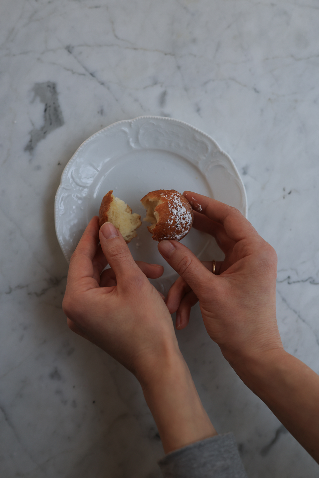 Zacznijmy od tego, że od dawna nie wdaję się w te głupie dyskusje o nadzieniach. Każdy (powtarzam: k a ż d y), kto zjadł w życiu tyle pączków co ja, wie doskonale, że najlepsze są te bez zbędnych dodatków w środku, delikatnie twarogowe, zwane przez niektórych „gdańskimi” (a przez innych: „powód, dla którego warto biegać w lutym”). Można je jeść jedną ręką — stojąc w kuchni, odprowadzając dzieci do przedszkola, biegnąc na spotkanie z księgową albo czekając na kolejke. I można ich zjeść dużo.