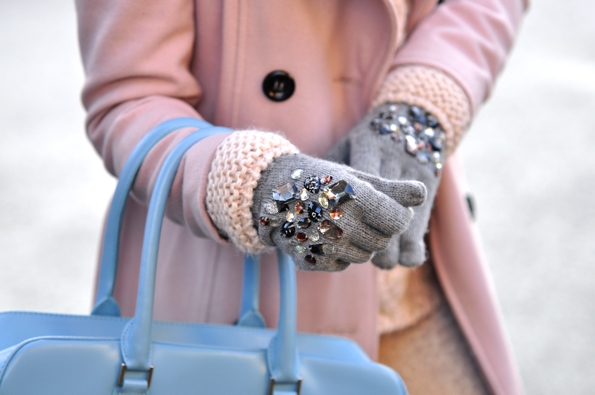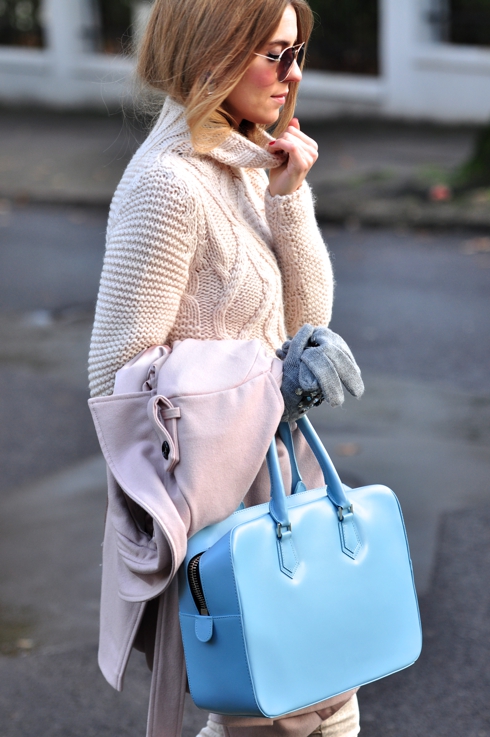 Many of us have greeted the falling temperatures with the decision to put on darker outfits. So far I have not been any exception to this rule – I tend to put on more colourful and pastel shades during the spring-summer period. However, yesterday I went for powder pink along with a beautiful pale-blue bag.