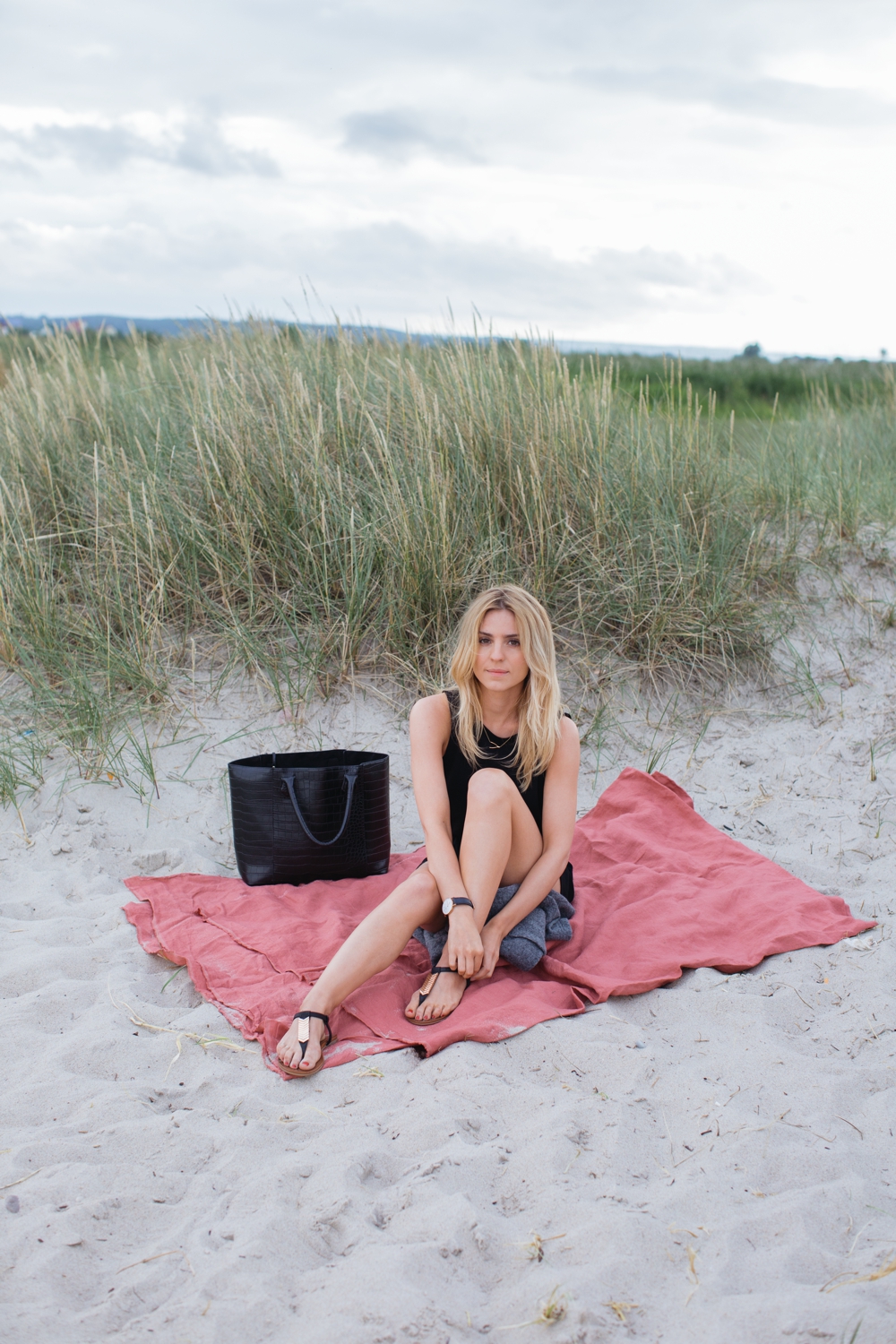 Another ideal Saturday by the sea has passed. Admittedly, I wouldn't call that type of weather ideal, but you can fall in love with Polish beaches even when grey clouds are milling about above them. It is strange to choose an outfit that is supposed to be practical when there is a cool wind blowing outside, and a second after, the sun is coming out and instantly warms the air. That is the reason for the strange combination of a long woollen sweater, a summer jumpsuit, and the most comfortable pair of sandals in the world.