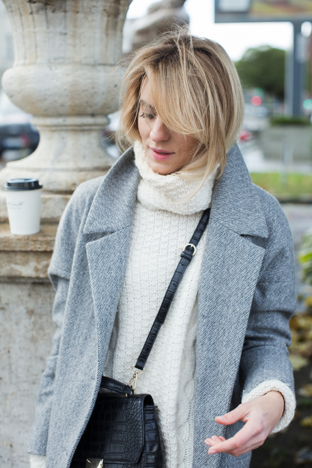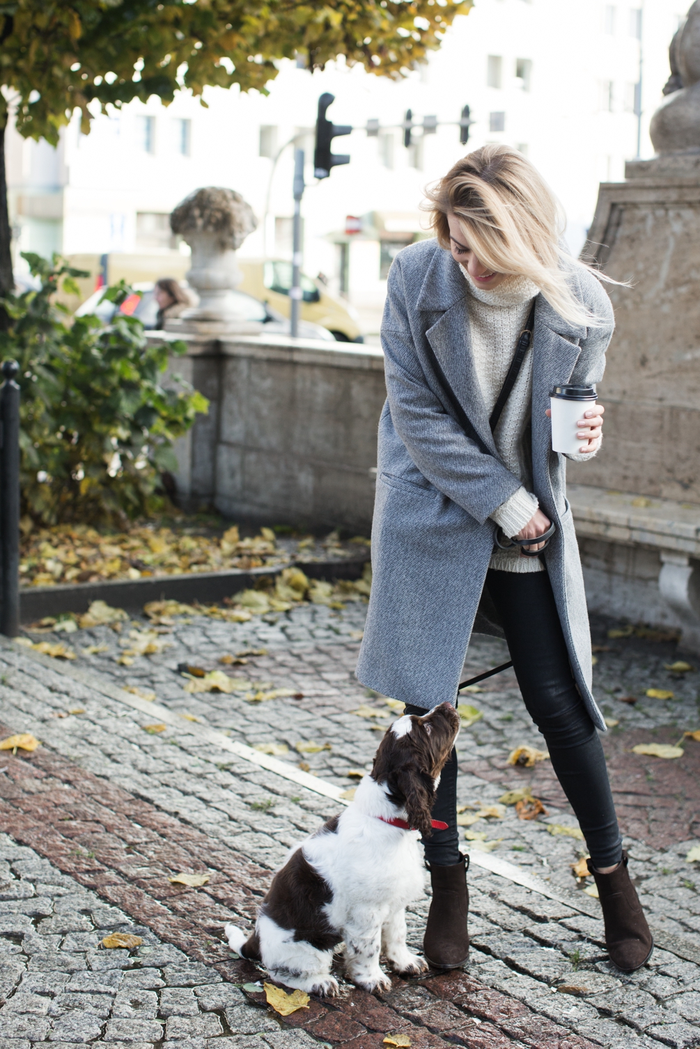 Od czasu, gdy stałam się posiadaczką psa, spędzam więcej czasu na zewnątrz, więc oczywiście ubieram się trochę cieplej. Świetnie sprawdza się w tym wypadku kremowy sweter od MLE Collection (długo szukałam idealnego, a ponieważ nie mogłam go znaleźć, postanowiłam stworzyć go sama). Wykonany jest z wełny merynosowej, która jest przyjemna w dotyku, bardzo ciepła i świetnie wygląda (trzeba ją natomiast co jakiś czas "golić" bo ma naturalną skłonność do delikatnego kulkowania się). Noszę też często oversizowy szary płaszcz, pod który można włożyć kilka warstw. Ten fason nie jest łatwy, dlatego projektując płaszcz zadbałam o to, aby pasował też drobniejszym kobietom.