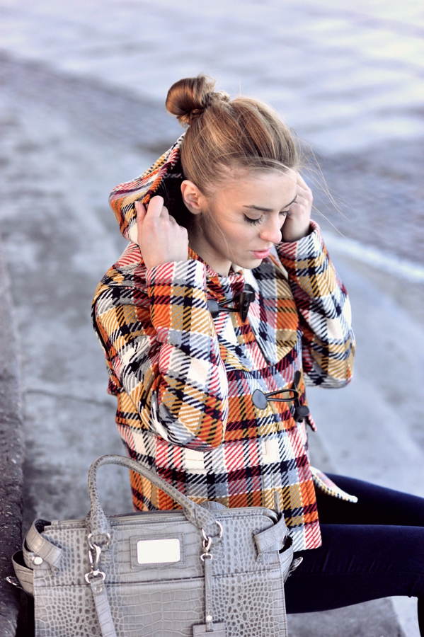 Co myślicie o odrobinie koloru w zimie? Pierwszy raz od dłuższego czasu trochę zaszalałam (to wina tych kuszących przecen!) i kupiłam krótką budrysówkę o ekstrawaganckim (jak na mnie) wzorze w kolorową kratę. Wbrew moim obawom, bez najmniejszego problemu połączyłam ją ze starymi rzeczami z mojej szafy. A co Wy upolowałyście na zimowych przecenach? :)