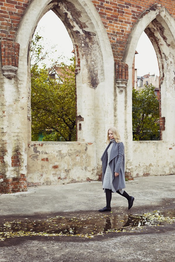 If this photo was black and white, I would say that Laura looks like a 90s icon straight from the cover of Vogue. A dress with an original retro-style cut that nonchalantly reveals her shoulder is an outfit that definitely makes an impression on the streets of Wrocław.
